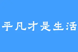 平凡才是生活